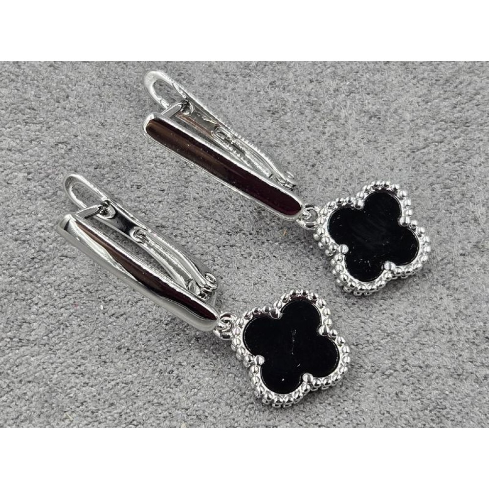 Серьги клевер 11 мм высота 30 мм цвет сталь (мед. сплав)