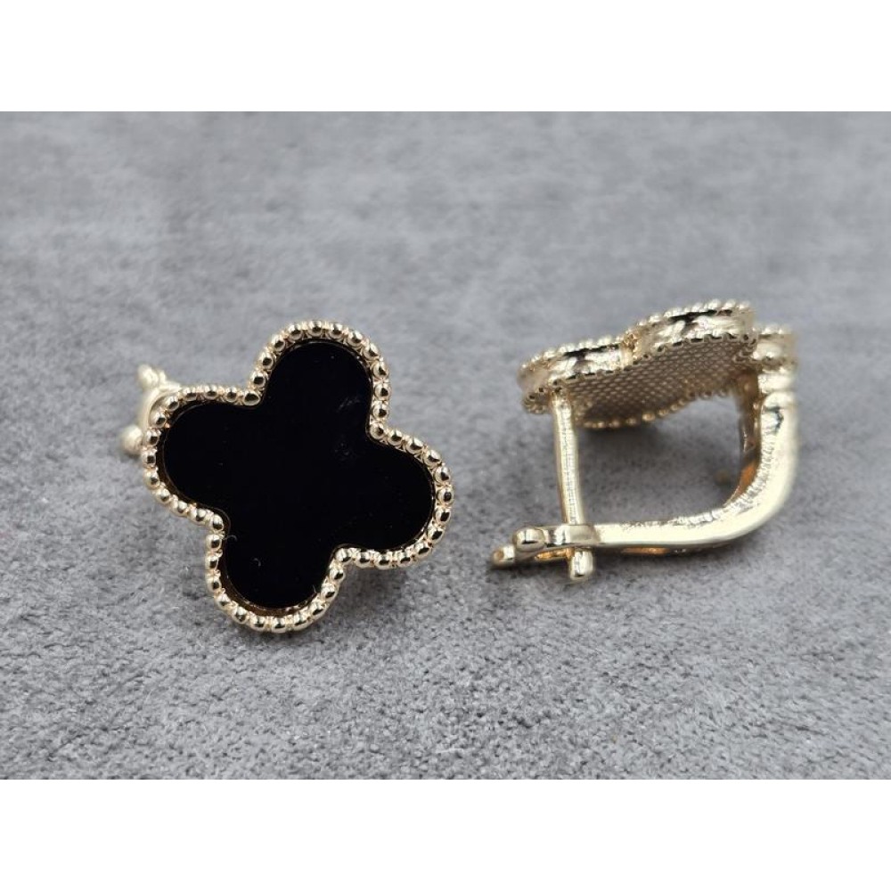 Серьги клевер 15 мм цвет золото (мед. сплав)