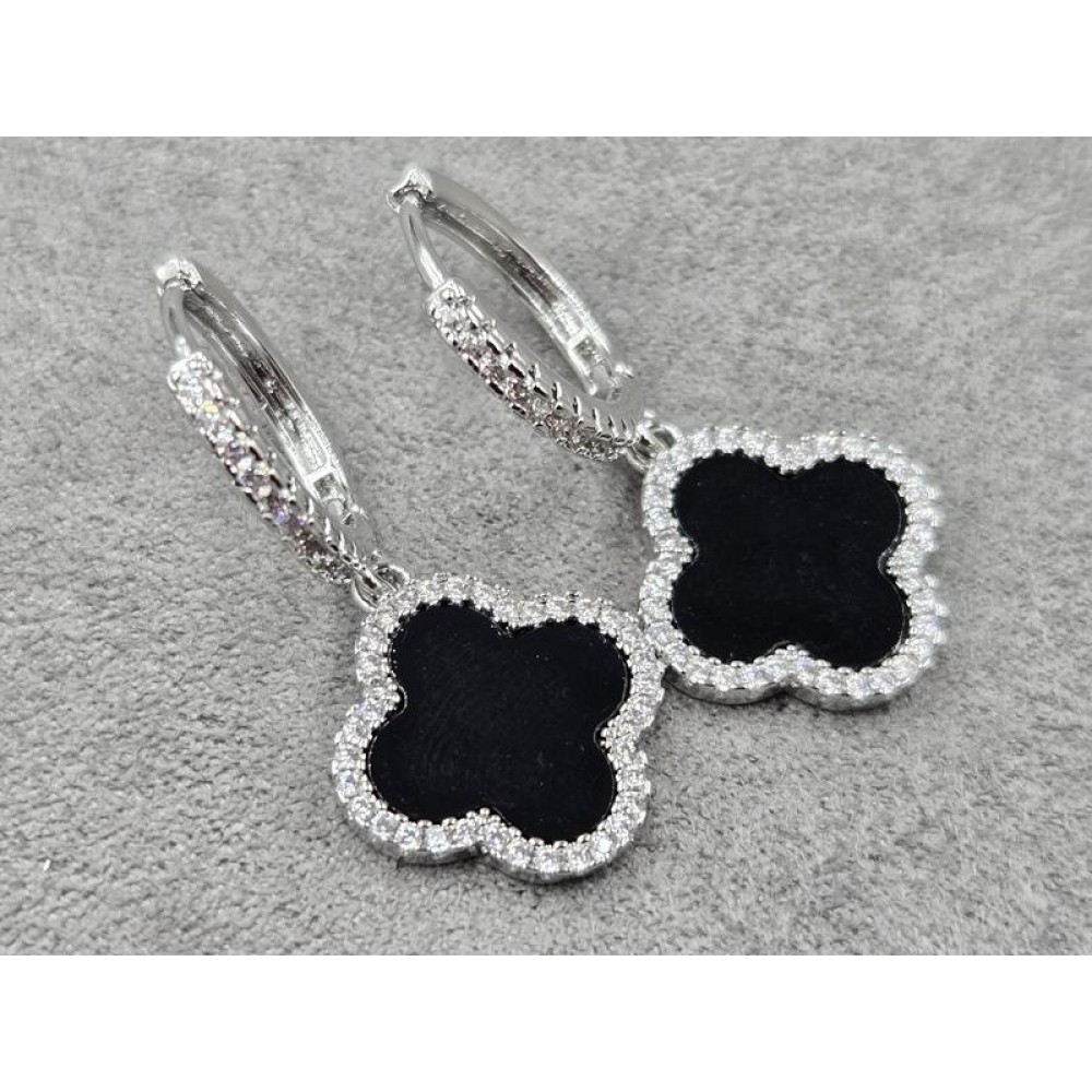 Серьги клевер 16 мм высота 32 мм цвет сталь (мед. сплав)