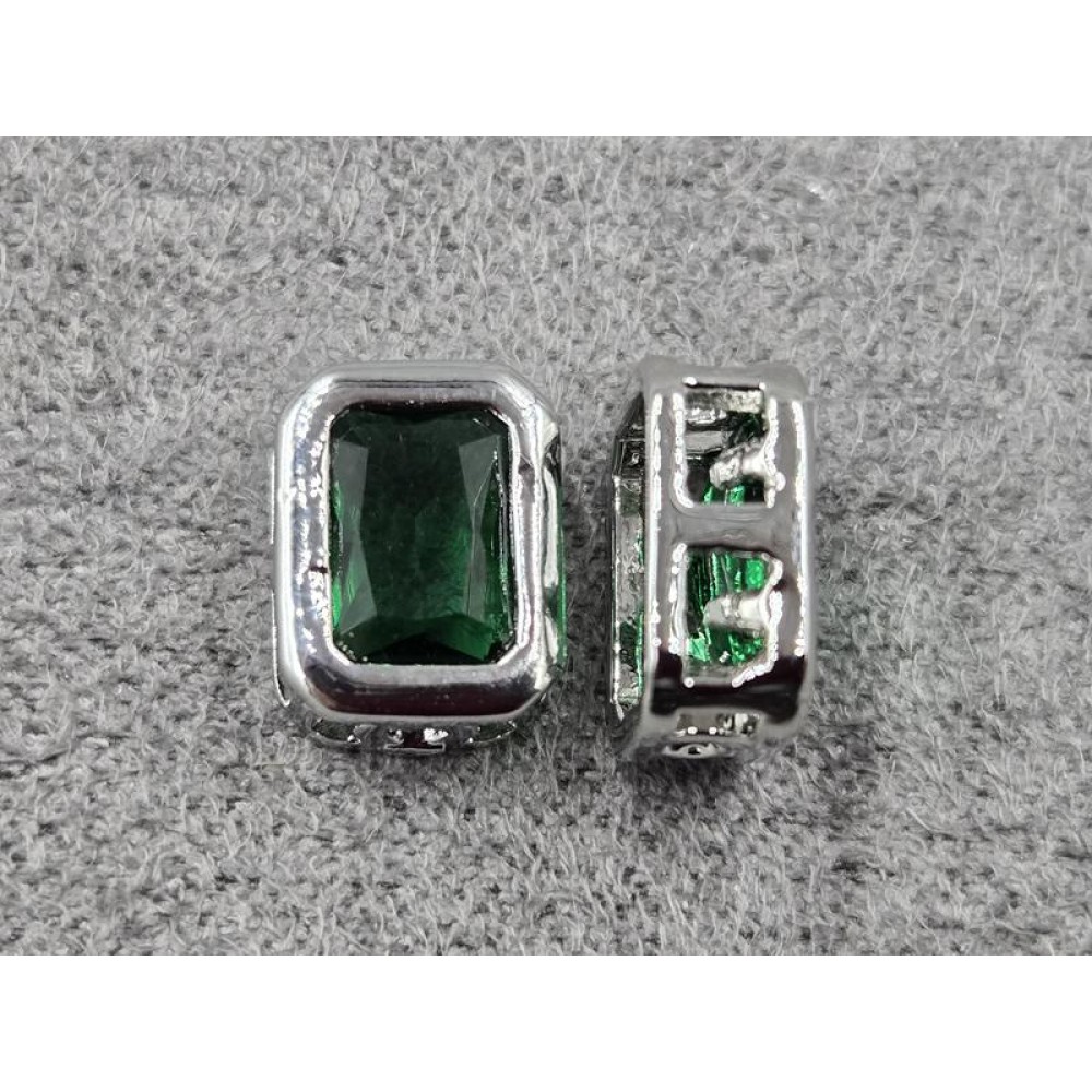 Бусина 7*9*4 мм с зеленим стразом колір сталь (гіпоалергений сплав)