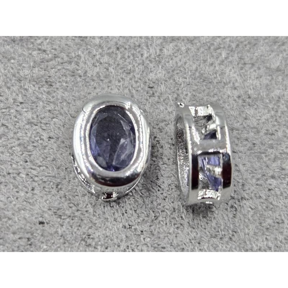Бусина 7*9*4 мм з аметистовим стразом колір сталь (гіпоалергений сплав)