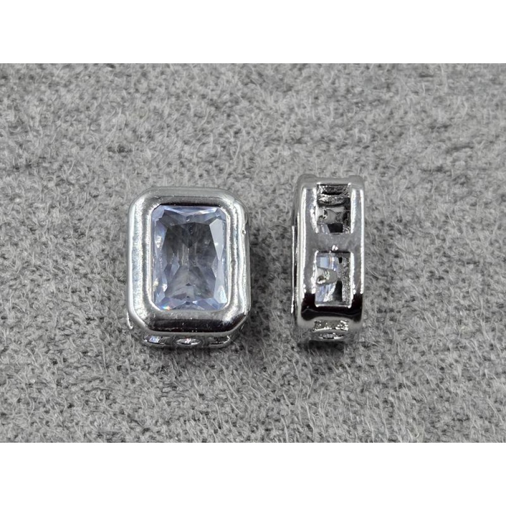 Бусина 7*9*4 мм з прозорим стразом колір сталь (гіпоалергений сплав)