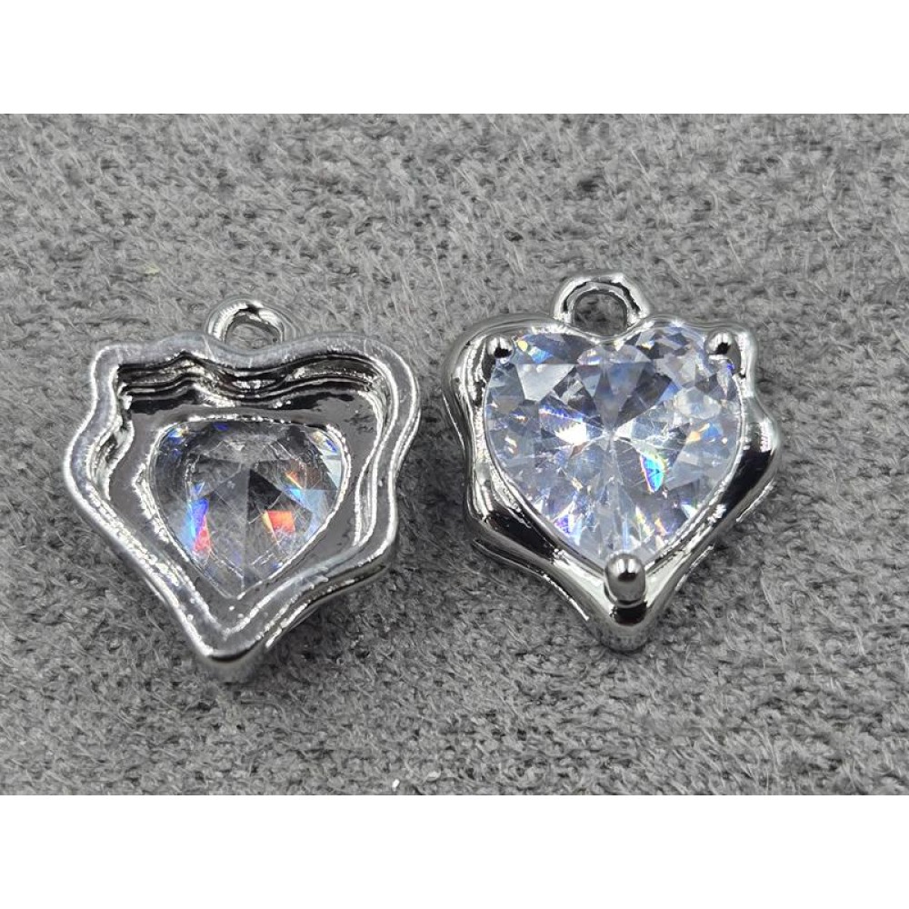 Підвіска серце 11*13 мм колір сталь з прозорим стразом (гіпоалергений сплав)