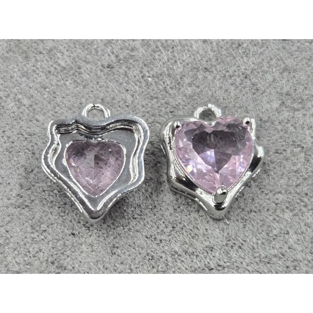 Підвіска серце 11*13 мм колір сталь з рожевим стразом (гіпоалергений сплав)