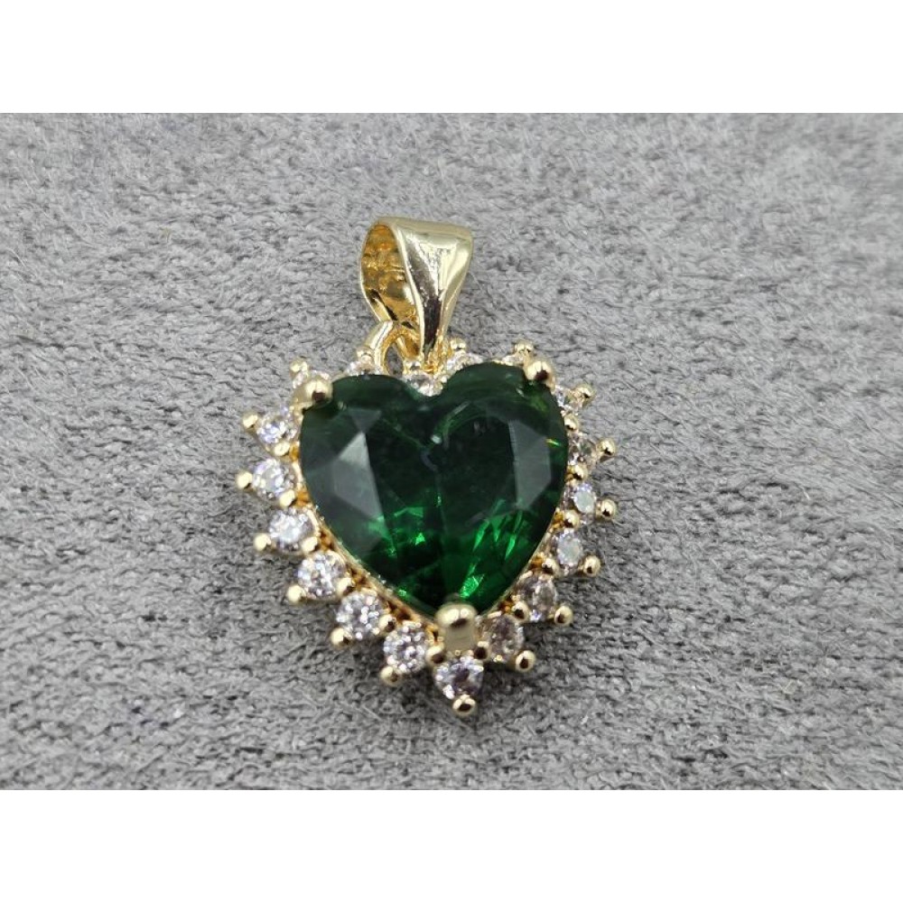 Підвіска серце 15 мм зелене колір лимонне золото (гіпоалергений сплав)