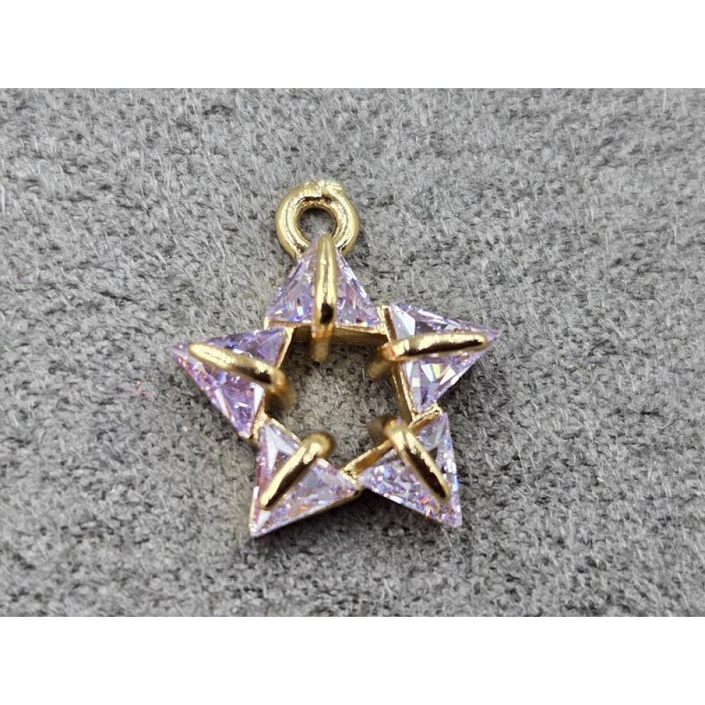 Підвіска 12*14 мм з бузковими стразами колір золото (гіпоалергений сплав)