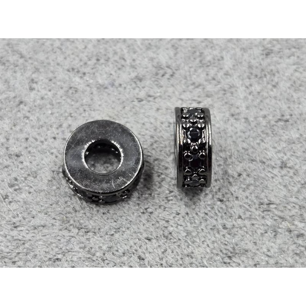 Рондель 3*7 мм колір чорний з чорними стразами (гіпоалергений сплав)