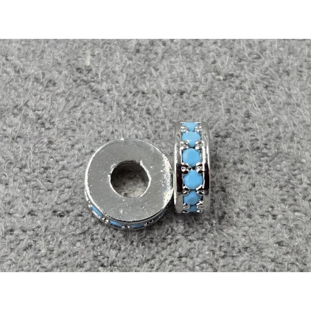 Рондель 6*2 мм колір сталь з блакитними стразами (гіпоалергений сплав)