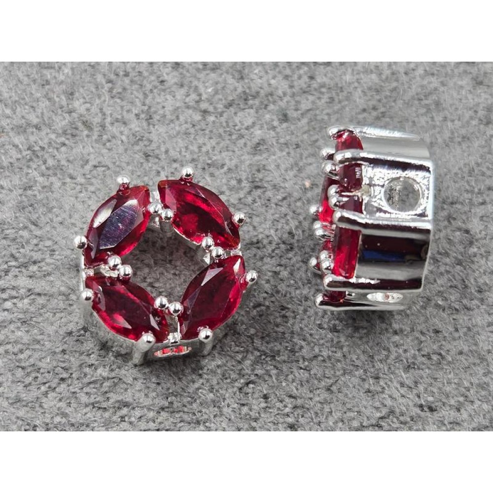 Бусина 10 мм с красными стразами цвет серебро (гиппоаллергенный сплав)