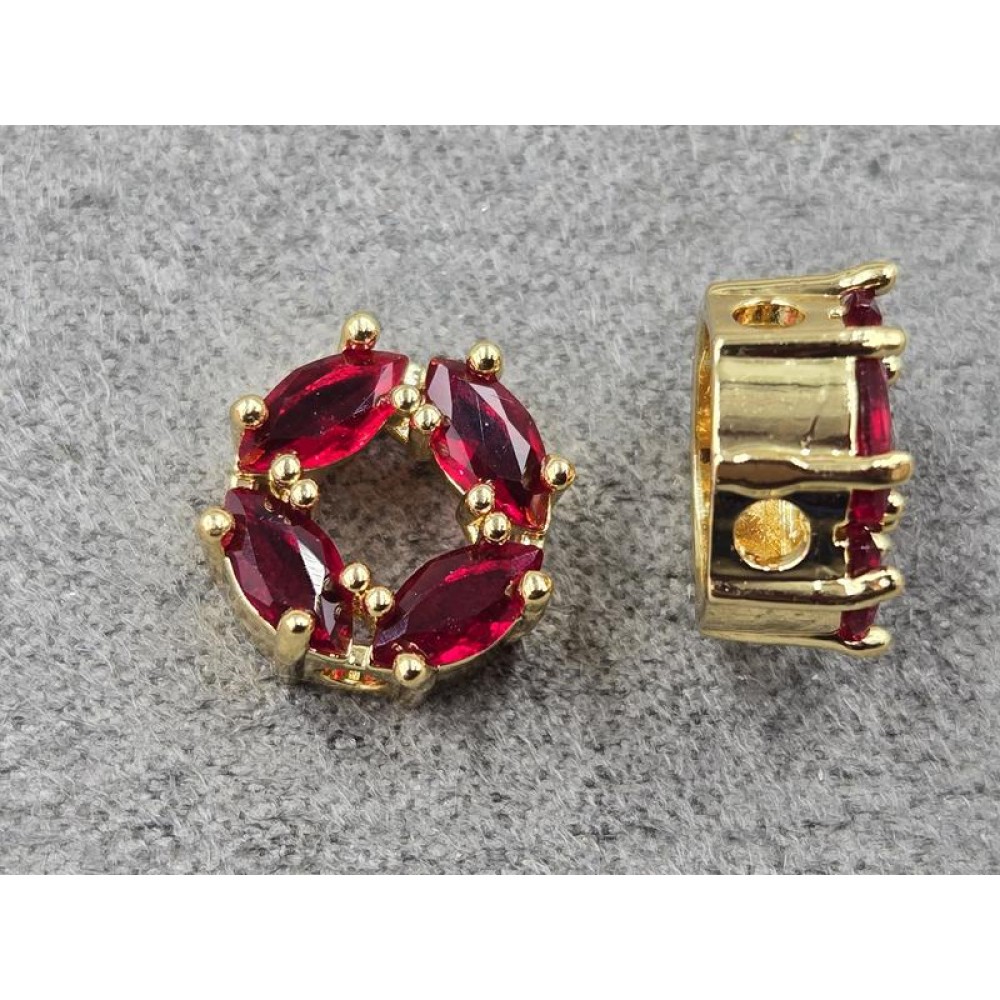 Бусина 10 мм с красными стразами цвет золото (гиппоаллергенный сплав)