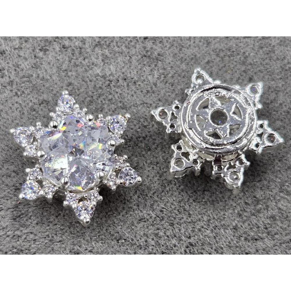 Бусина 14 мм с белым стразом цвет серебро (гиппоаллергенный сплав)