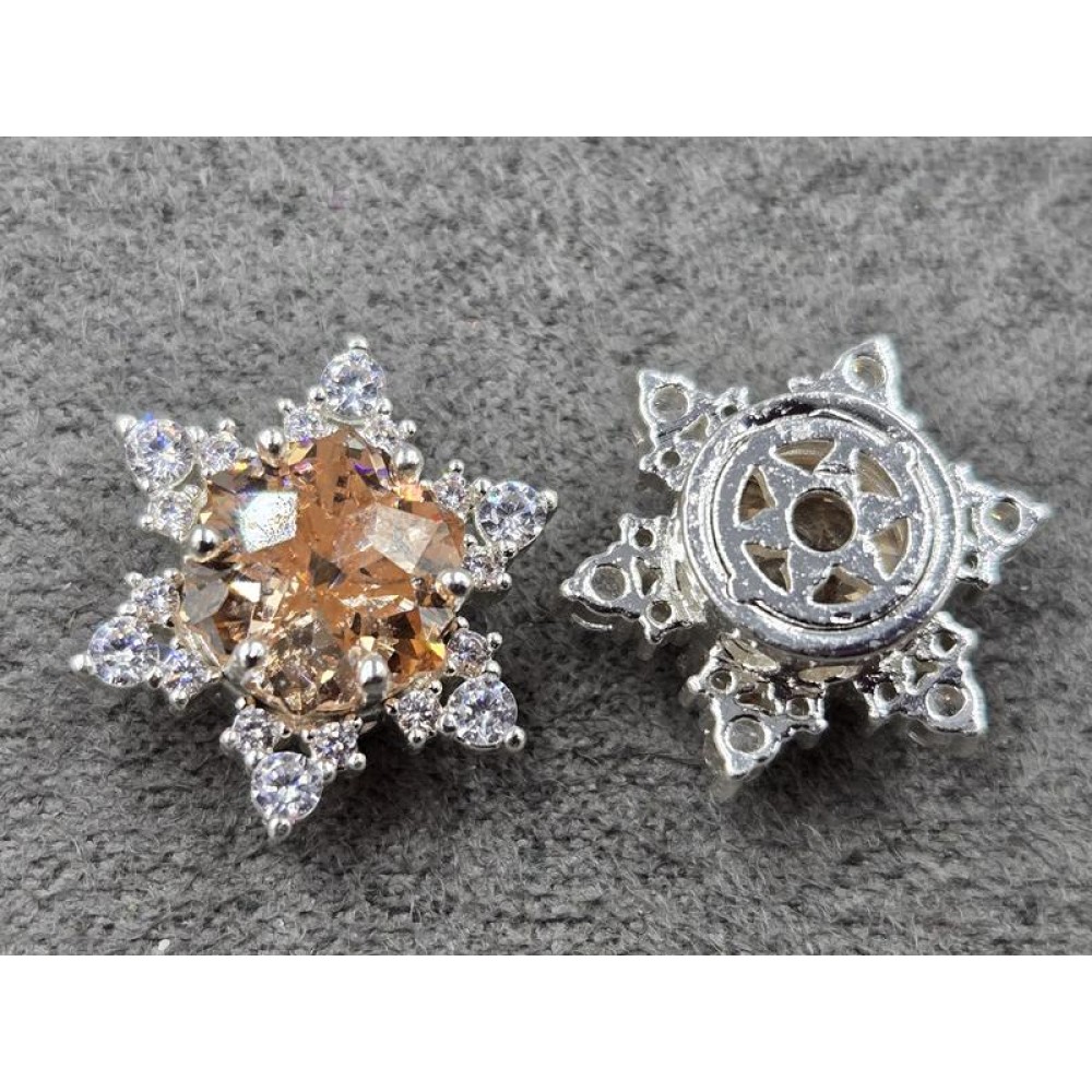 Бусина 14 мм с персиковым стразом цвет серебро (гиппоаллергенный сплав)