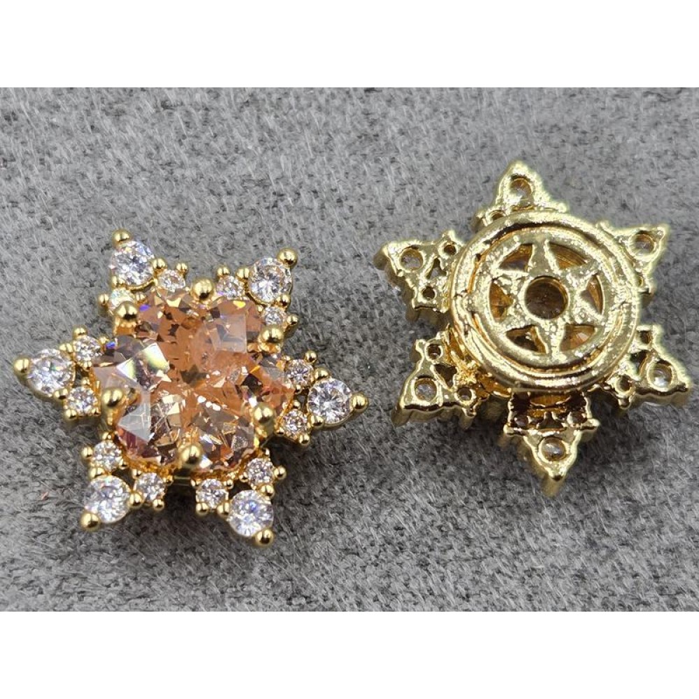 Бусина 14 мм с персиковым стразом цвет золото (гиппоаллергенный сплав)