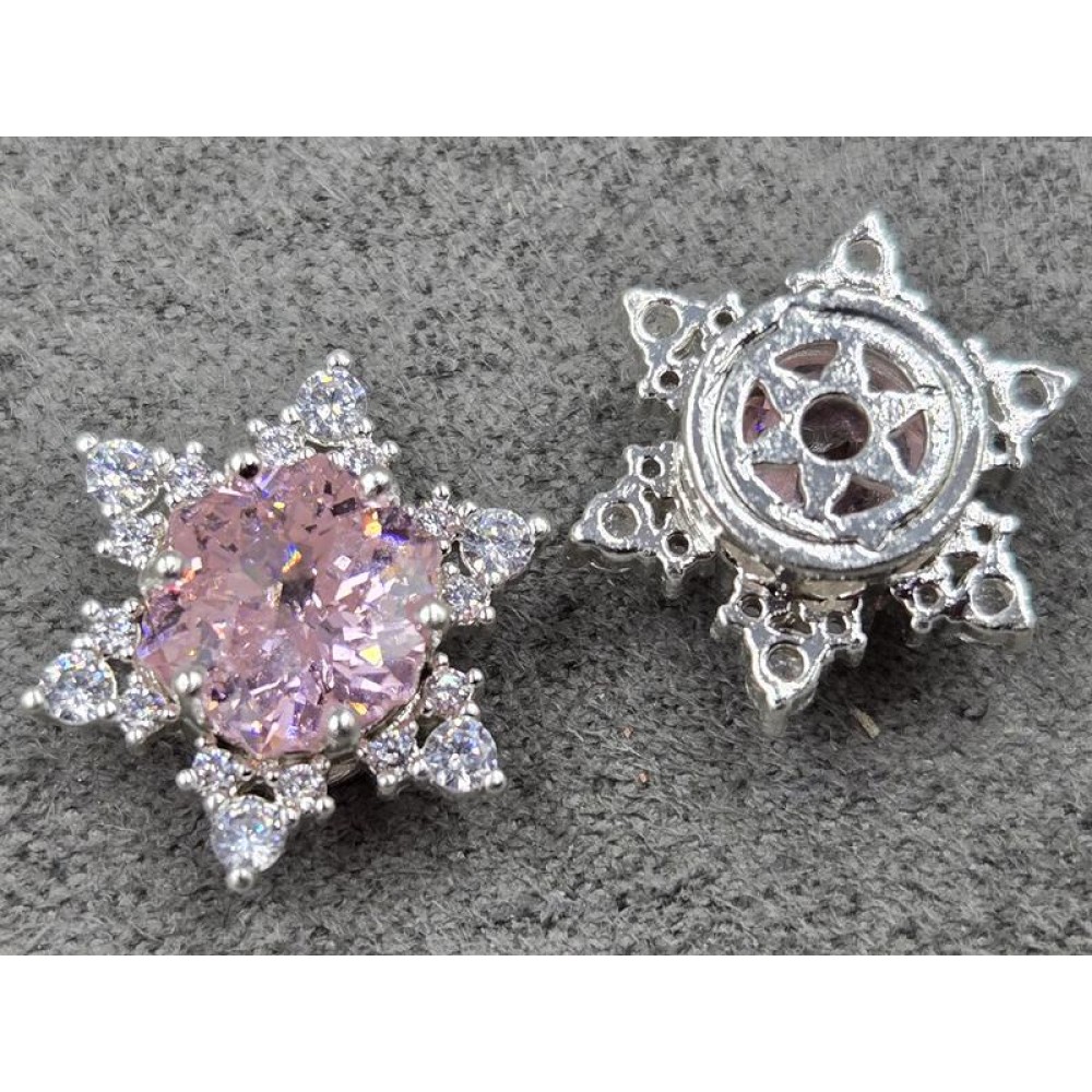 Бусина 14 мм с розовым стразом цвет серебро (гиппоаллергенный сплав)