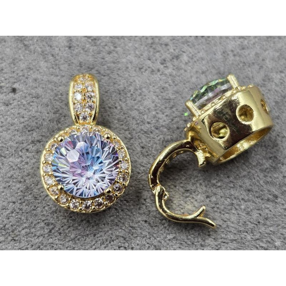 Подвеска-бейл 11*19 мм с фиолетовым стразом цвет золото (гиппоаллергенный сплав)