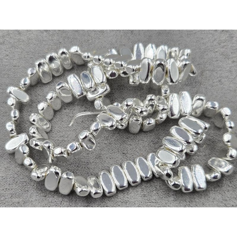 Гематит 4*8 мм товщ. 3 мм з поперечним отвором колір срібло довжина 39 см
