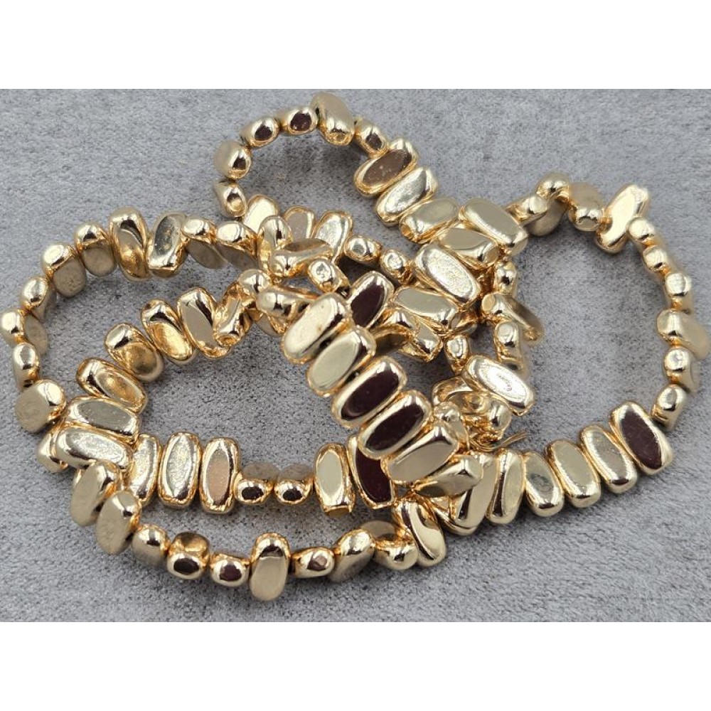 Гематит овал 4*8 мм товщ. 3 мм з поперечним отвором колір золото довжина 39 см