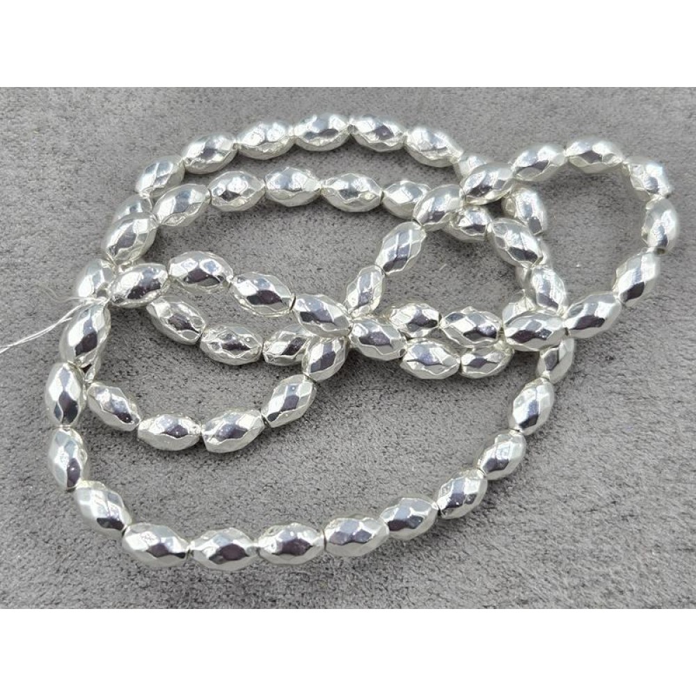 Гематит рис 4*6 мм колір срібло грань довжина 38-39 см