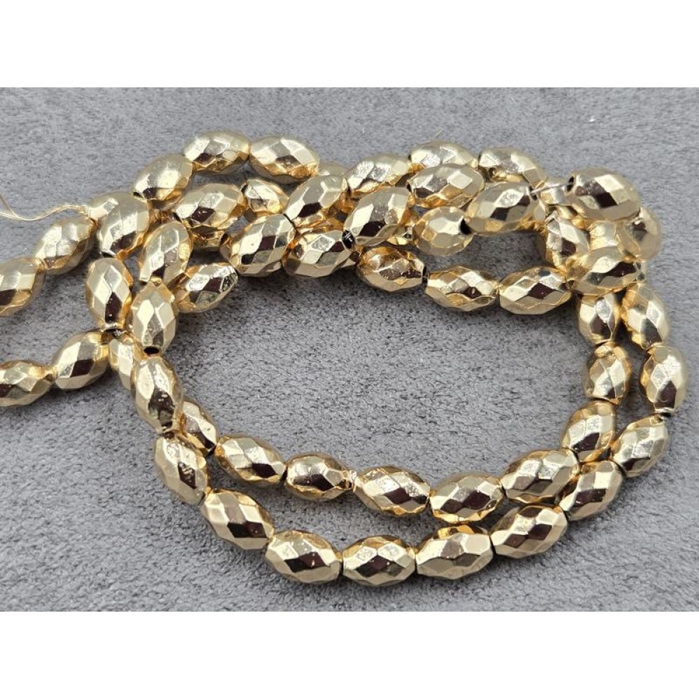 Гематит рис 4*6 мм колір золото грань довжина 38-39 см