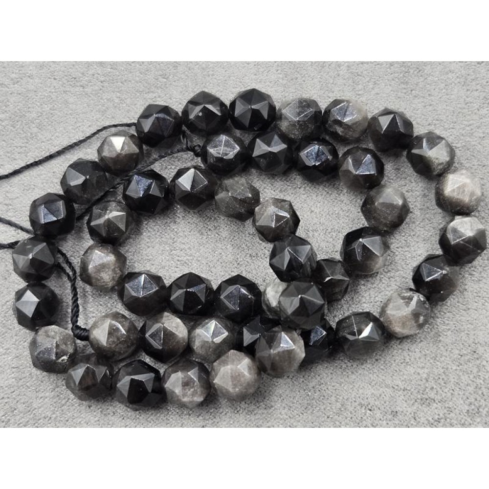 Обсидіан сірий 8 мм багатогранник довжина 37-38 см