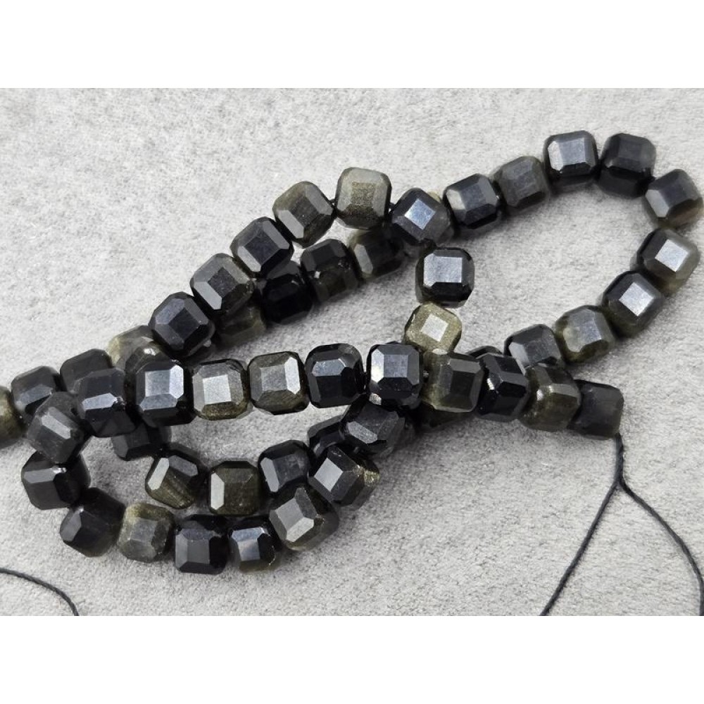 Обсидиан gold кубик 7 мм грань длина 36-37 см
