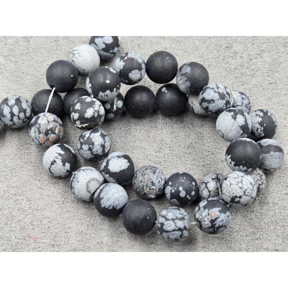 Обсидиан снежный 10,6-10,8 мм матовый длина 37-38 см
