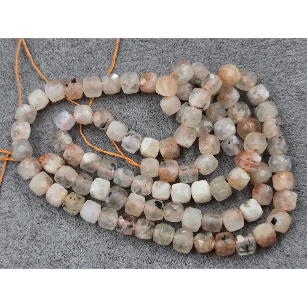Солнечный камень кубик 4,2-4,4 мм грань длина 37-38 см