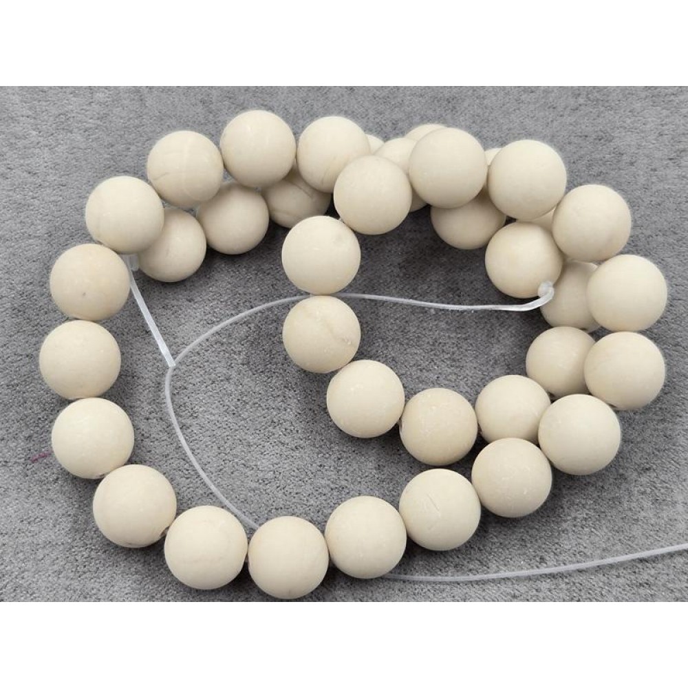 Яшма матовая 10,4-10,6 мм белая ископаемая длина 37-38 см