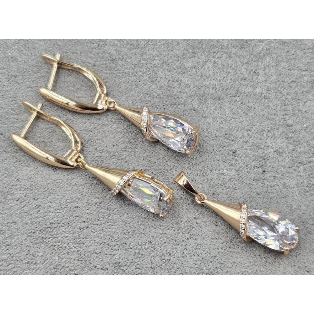 Комплект Xuping сережки 7*37 мм + кулон 7*27 мм колір золото 18к