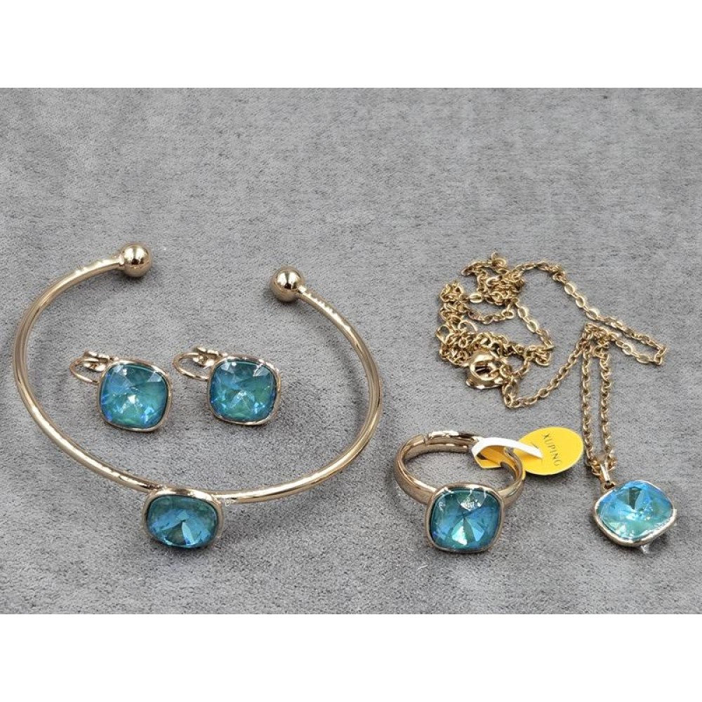 Комплект Xuping серьги 12*19 мм + кулон + браслет + кольцо безразмерное колір 18к