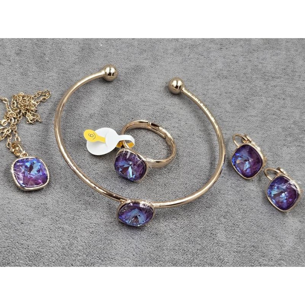 Комплект Xuping серьги 12*19 мм + кулон + браслет + кольцо безразмерное колір 18к