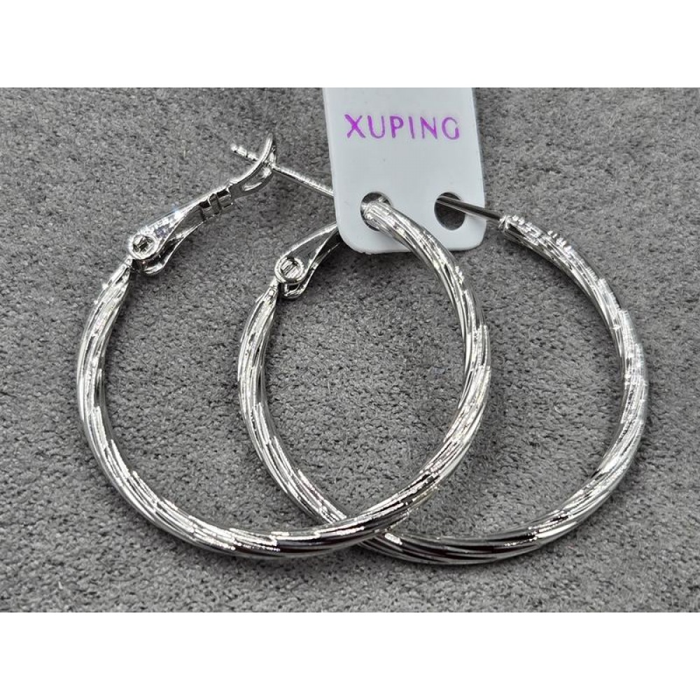 Серьги кольца Xuping 2 мм высота 30 мм родий