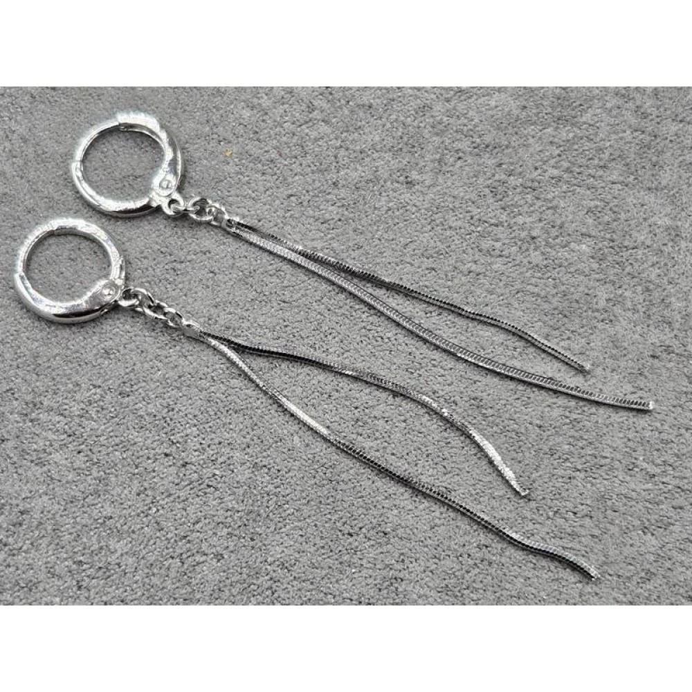 Серьги Xuping 3 мм высота 6 см круглый замок родий